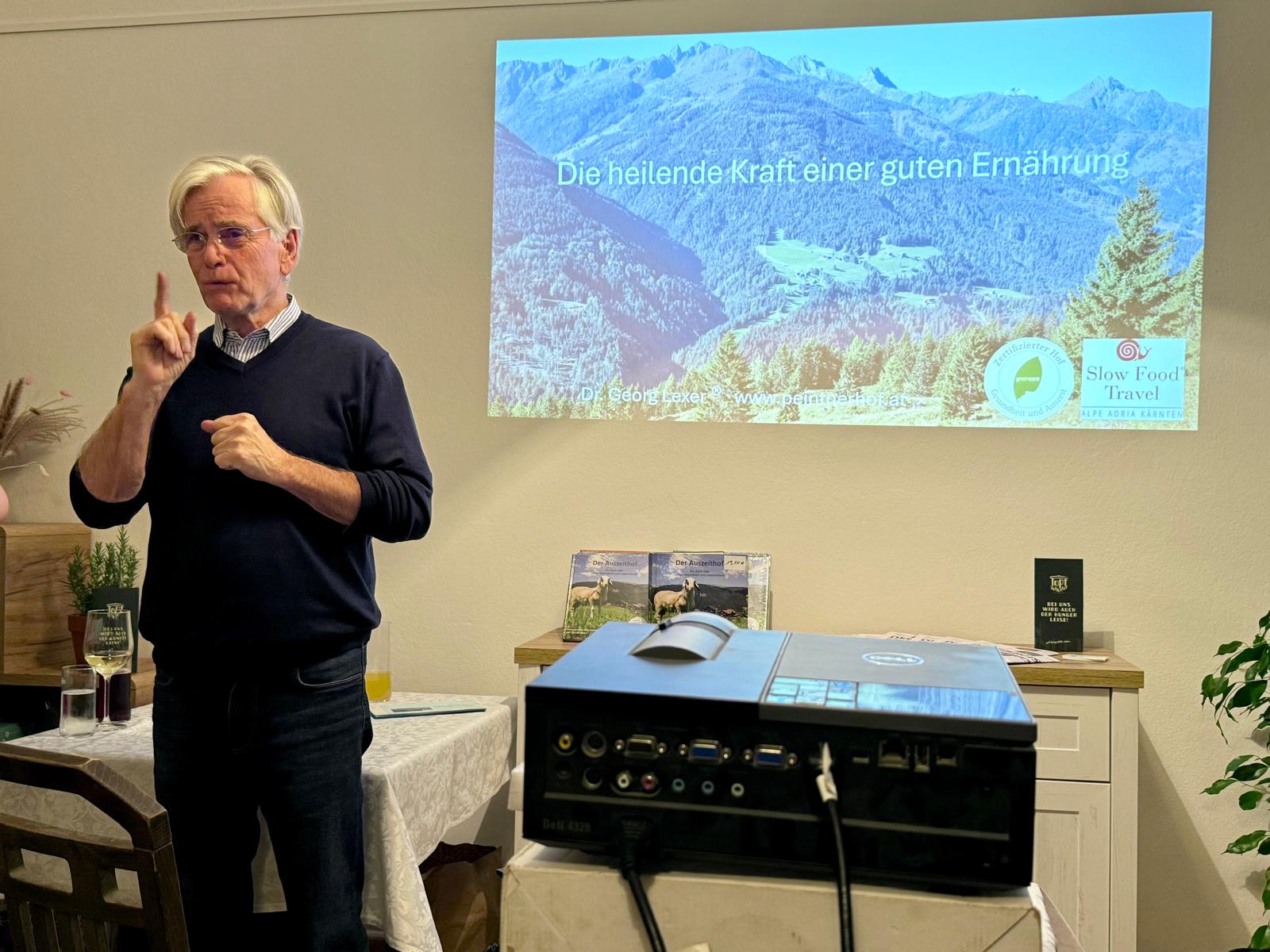 Der Arzt, Chirurg, langjähriger Krankenhausleiter, Lesachtaler Biobauer und Buchautor Dr. Georg Lexer hielt einen spannenden Vortrag über „die heilende Kraft einer guten Ernährung“. Gesunde Ernährung kann Krankheitsrisiken senken und bei Patienten den Krankheitsverlauf positiv beeinflussen.